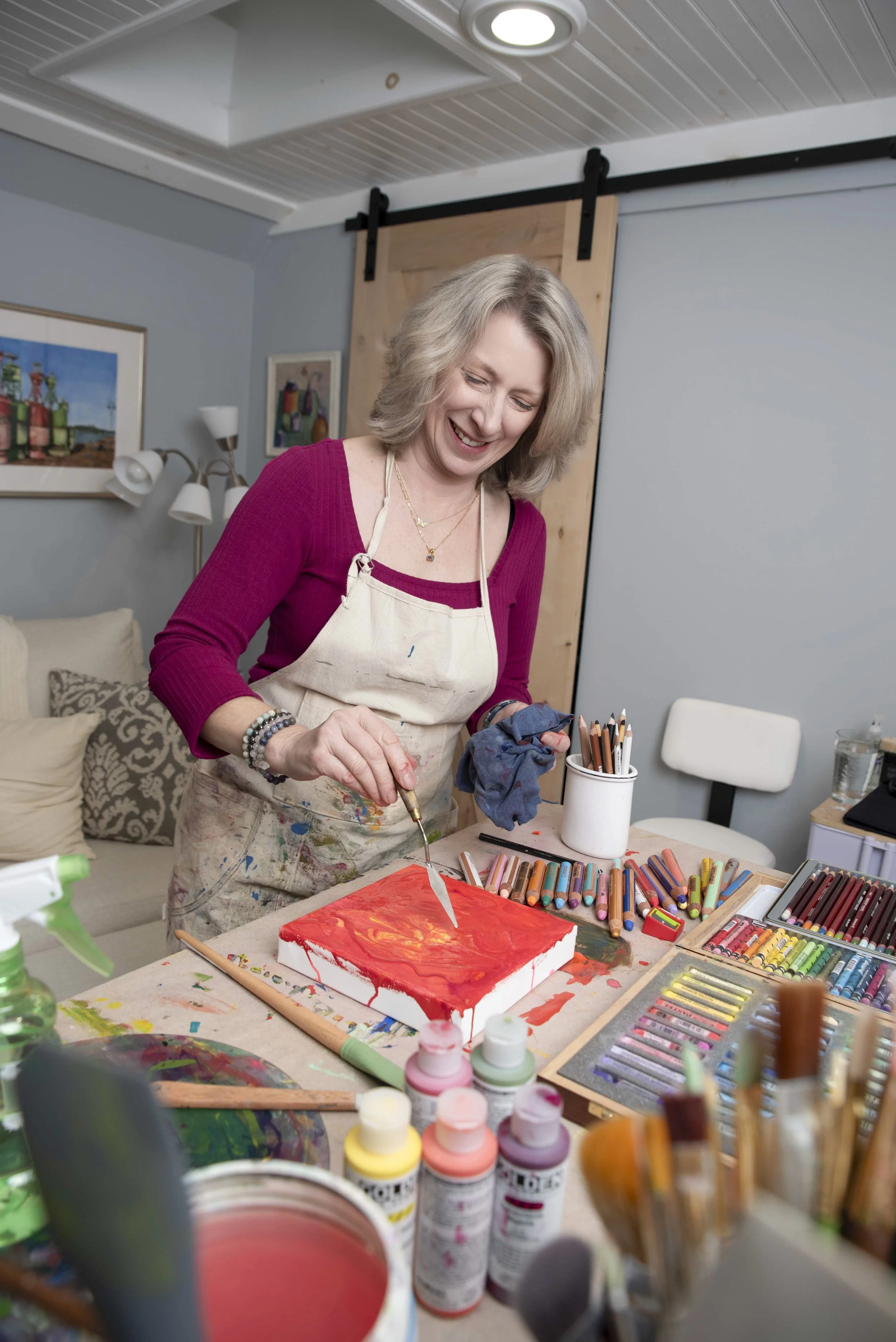 I am an intuitive mixed media artist whose diverse work responds to the spirituality of nature and life’s fragility. Using varying mediums and materials allows me to explore how to reach the viewer through resonate mediums. Each subject, whether a beautiful landscape or a representation of a pressing societal issue asks something uniquely its own. Transparent watercolors allow for landscapes to convey their natural beauty and their evermore delicate balance. Works that speak to our political climate ask for more tactile collage works featuring recycled found bits. Whereas, urgent spiritual messages seek the vibrancy of acrylics and chalk pastels. Each choice gives my audience a window into how we treat the environment, one another and ourselves.